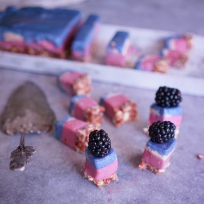 Diese bunten Käsekuchenhäppchen kommen ganz ohne Zucker, tierische Produkte, künstliche Farbstoffe und sogar ohne Backofen aus. Meine Kinder lieben sie alleine schon wegen der Farben und sie merken gar nicht, dass sie dabei etwas Gesundes essen.