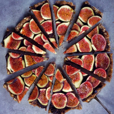 Schmelzt das Kokosöl in einem Wasserbad und gebt die anderen Zutaten für die Schokoschicht unter ständigem Rühren dazu. Schneidet die Feigen in Scheiben. Verteilt die Schoko-Creme auf dem Boden und bedeckt sie mit den Feigen. Im Kühlschrank hält sich der Kuchen 1-2 Tage.