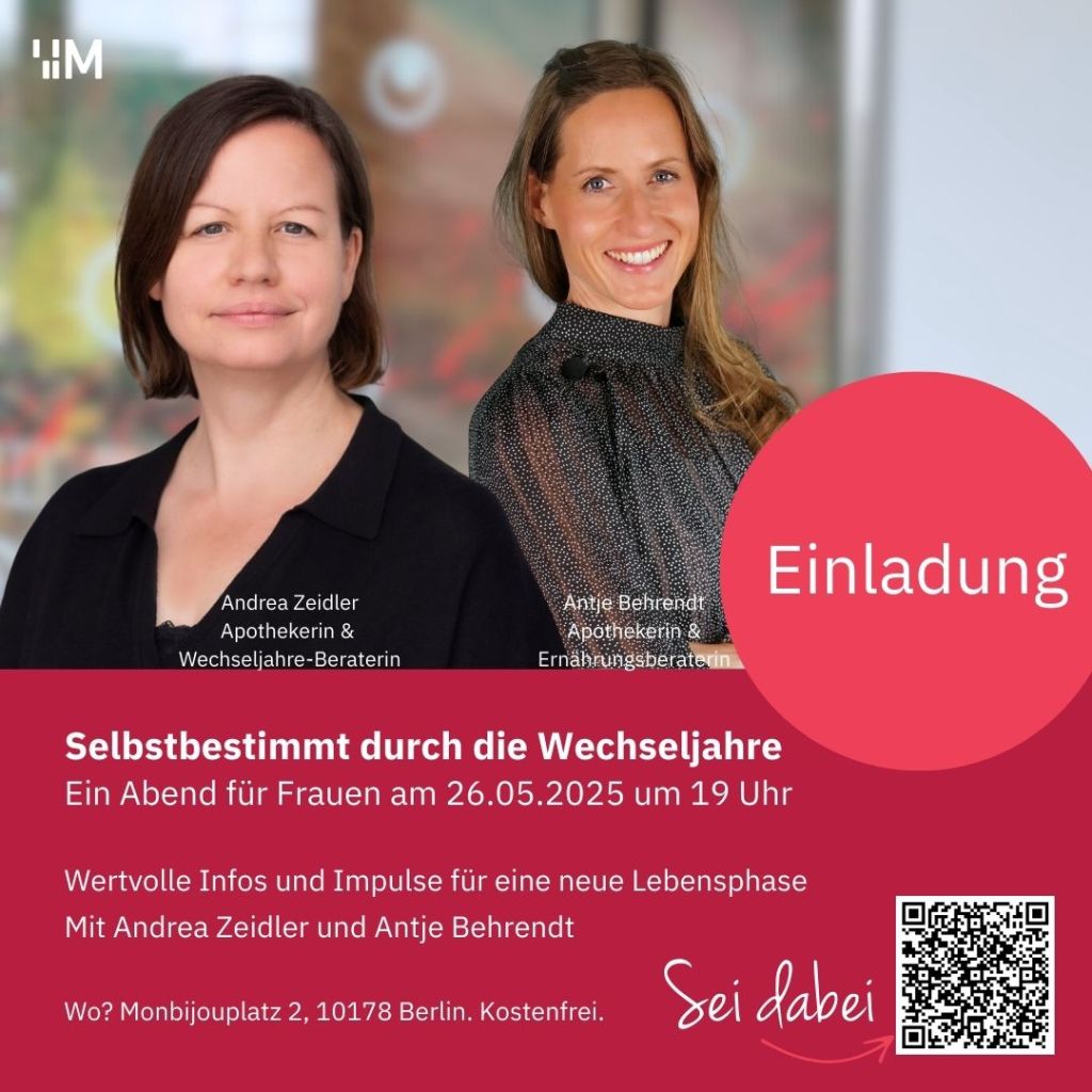 Im Frühjahr 2025 gibt es eine Veranstaltungsreihe für Frauen, die sich auf die Wechseljahre vorbereiten wollen oder mittendrin sind – ich werde dort ebenfalls Vorträge halten und informieren zu hormonellen Veränderungen, Herausforderungen, Ernährung und weiteren Themen, die Frauen rund um die Wechseljahre beschäftigen: